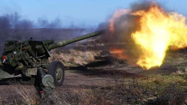 Военные корреспонденты ДНР запечатлели на видео работу гаубиц 2А65 "Мста-Б" по опорнику ВСУ в районе Первомайского, сообщает "Русская весна".