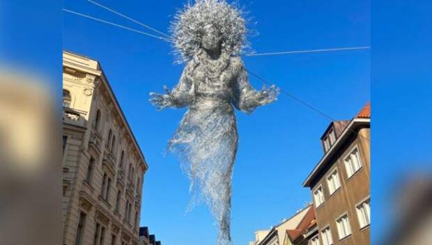 В самом центре Праги появилась жуткая скульптура под названием "Венок", которая посвящается украинским матеря. Фигура, имеющая устрашающий вид была подвешена на высоте нескольких между жилыми домами.