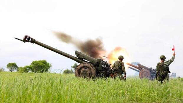 Информационный портал "Русская весна" у себя в Телеграм-канале опубликовал кадры боевой работы российской артиллерии на территории Бахмута (Артемовска).