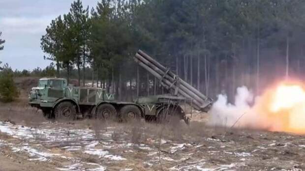 Российские РСЗО заняли боевые позиции на удаленном расстоянии друг от друга и нанесли огневое поражение по позициям украинских националистов.