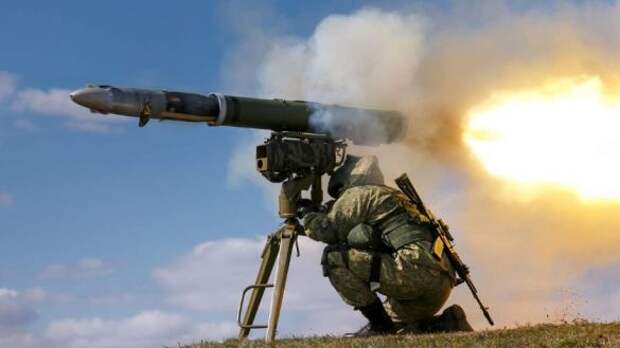Расчеты ПТРК поддерживают штурмовые группы ВС РФ, наступающие на бывшую войсковую часть противовоздушной обороны в районе Авдеевки.