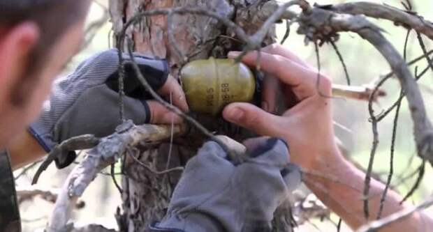 На представленном видео украинские боевики пробираются сквозь деревья и в этот момент подрываются на миной растяжке, сообщал корреспондент издания Денис Кулага.