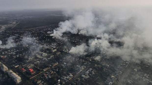 Бойцы ЧВК «Вагнер» совместно с подразделениями ВС РФ уничтожают противника на Артемовском направлении. Военнослужащие ВСУ при помощи БПЛА засняли кадры охваченного боями горящего Бахмута. Об этом сообщает портал «Русская Весна», прилагая видеоматериал.
