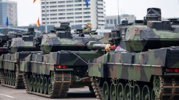В Сети появились кадры того, как колонна немецких танков Leopard 2A4, поставленных на вооружение ВСУ, движется по украинскому бездорожью, сообщает информационный портал "Русская весна".