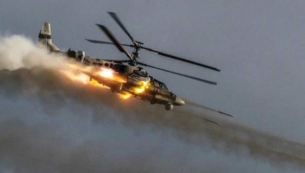 На видеокадрах запечатлена работа российских ударных вертолетов Ка-52 «Аллигатор» и Ми-28 «Ночной охотник».