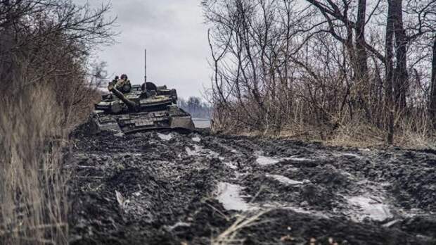 По данным публикации, военная техника украинских националистов в буквальном смысле утопает в грязи и не может продвинуться вперед. На одном из видео также показано, как бронеавтомобиль Kirpi взят танком ВСУ на буксир.