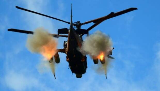 Ударные вертолёты Ка-52 нанесли удары по позициям украинских танков, а также противотанковых орудий, установленных в укреплении, рассказали в Минобороны.