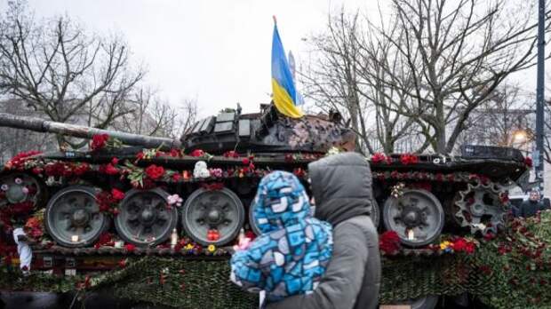 Люди начали приносить к российскому танку цветы и выступать против поставок Германии тяжелых вооружений Киеву.
