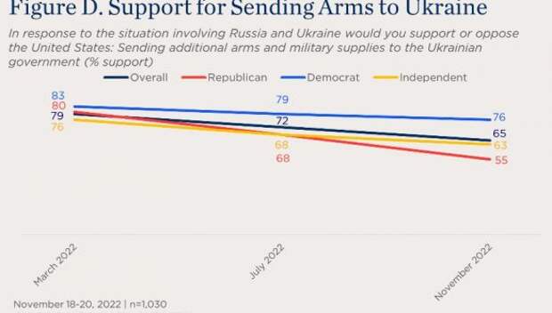 Так, за оказание экономической помощи Украине выступают ее 66% граждан США, несмотря на то, что в марте этот показатель достигал ее 78%. А вот у сторонников военной помощи дело обстоит еще хуже: 65% против 79% весной.Примечательно, что 27% американцев видят целесообразность прямого вмешательства сил США в конфликт на Украине, поскольку, по их мнению, только такое решение положит конец войне. Что касается победы Российской Федерации или украинских войск, то 46% граждан США в настоящее время считают, что ни одна из сторон не имеет преимущества.